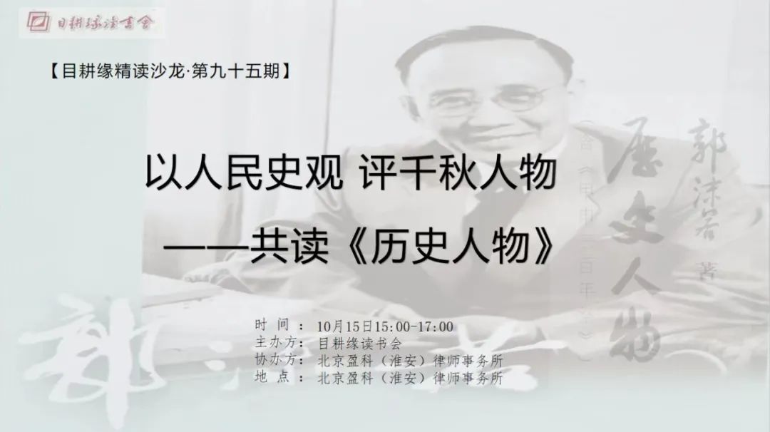 全民阅读,书香盈科。为满足律所内外部知识服务需求,增加员工参与阅读学习的积极性,提升员工的文化素养,2022年10月15日,北京盈科(淮安)律师事务所联合目耕缘读书会共同举办“以人民史观 评千秋人物——共读《历史人物》暨郭沐若文学沙龙“活动。来自所内外的四十余名书友参加活动。